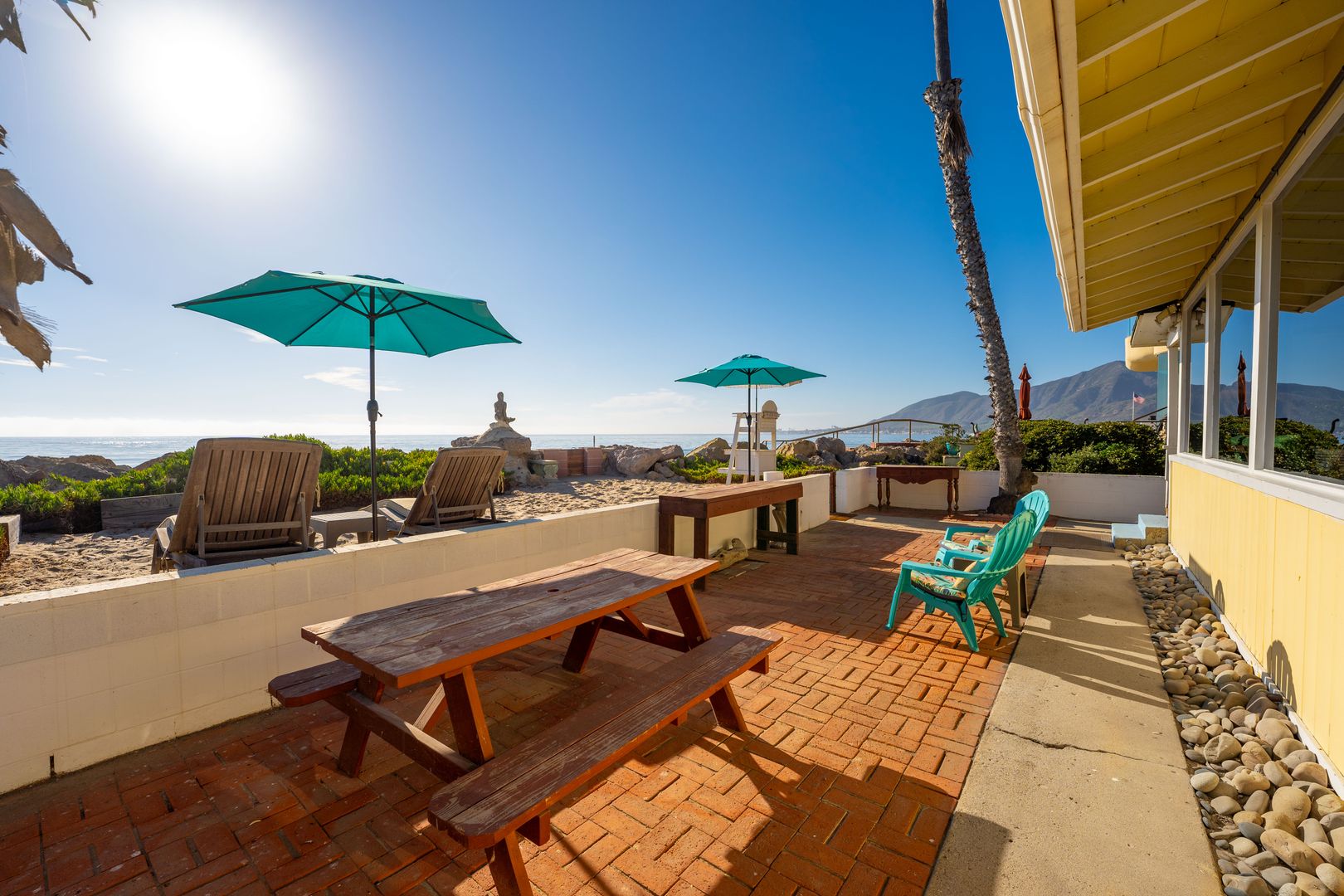 Step out to your private patio with a picnic table, barbeque and sandbox including lounge chairs and lots of umbrellas. Be greeted by dolphins swimming by as you sip your coffee on the private deck. Take the private steps down to Solimar beach for morning walks, sea glass hunting at low tide, or sit on the deck during high tide for sunset cocktails and feel the waves crash on the rocks below.