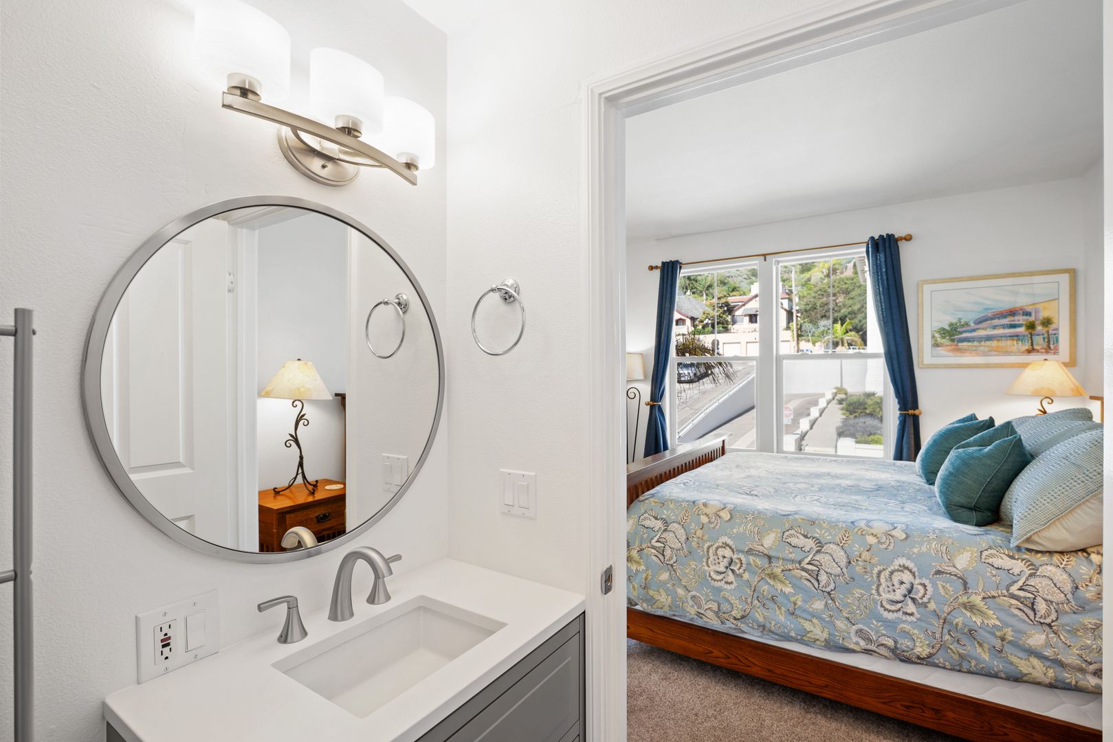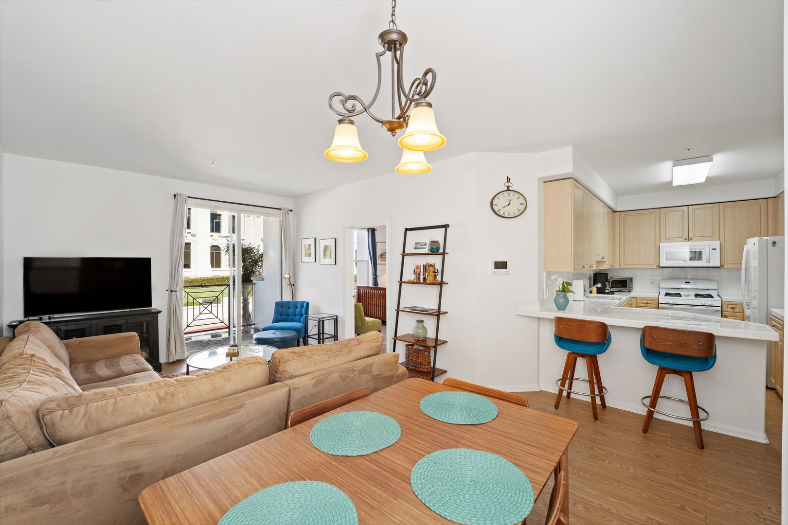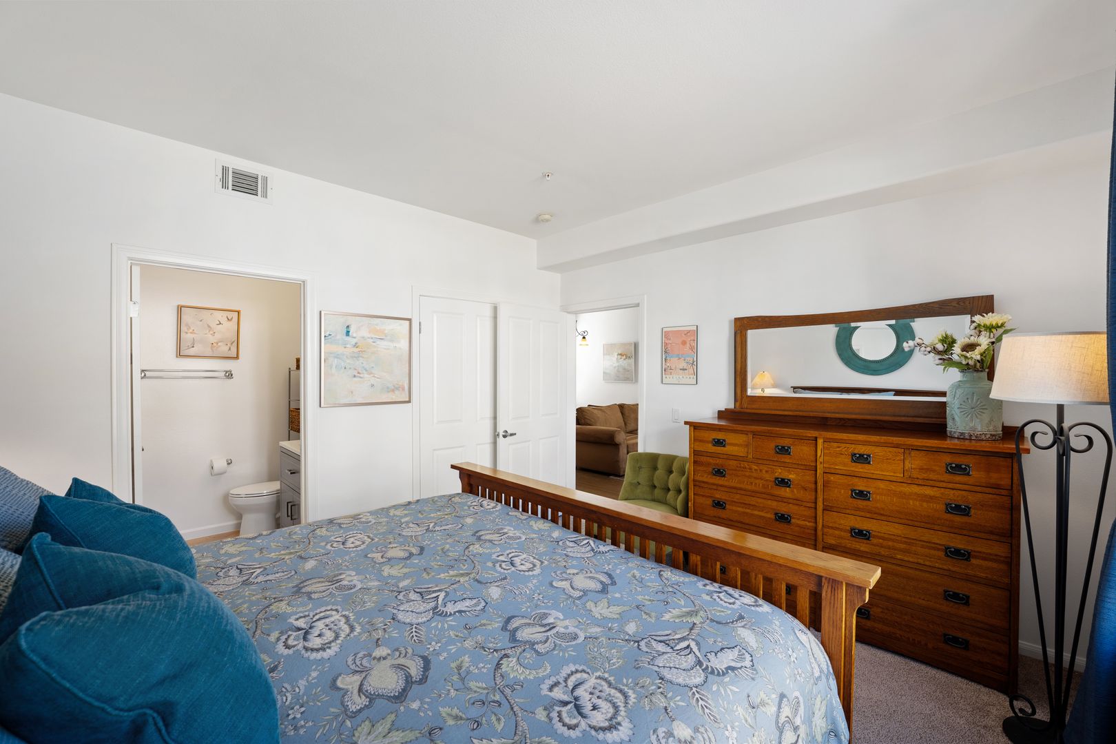 The home is filled with natural light and thoughtfully styled with contemporary furnishings and artful décor. The open layout creates a comfortable yet refined atmosphere, settle into the inviting sectional and catch up on your favorite shows, movies, or live sports on the Smart TV. On warm summer days, start your morning with coffee on the private balcony enjoying Ventura’s refreshing coastal breeze.