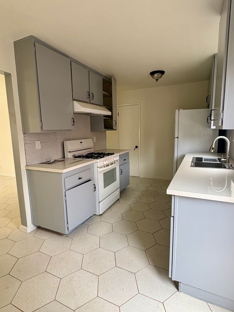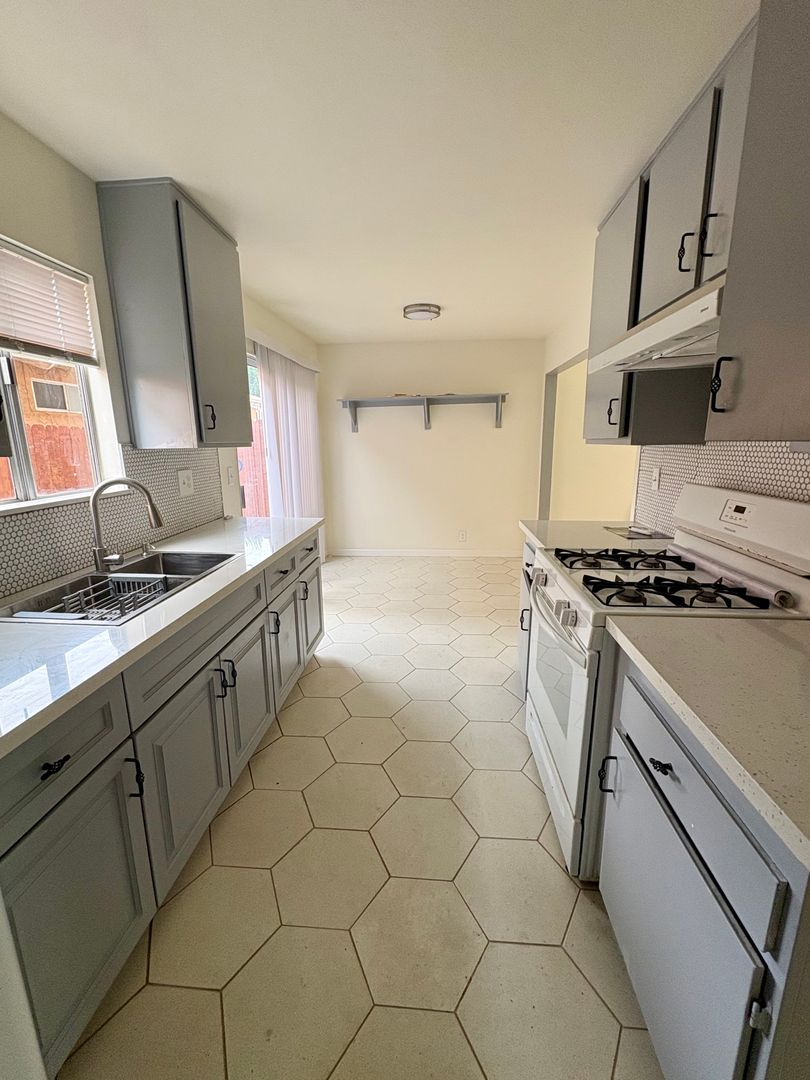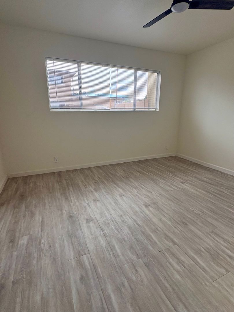 This charming 2-bedroom, 1-bathroom apartment is located in a well-maintained four-unit complex in North Oxnard. Situated on the first floor, the unit has been recently renovated and features tile and vinyl plank flooring throughout, modern light fixtures, and high-end countertops in both the kitchen and bathroom.
