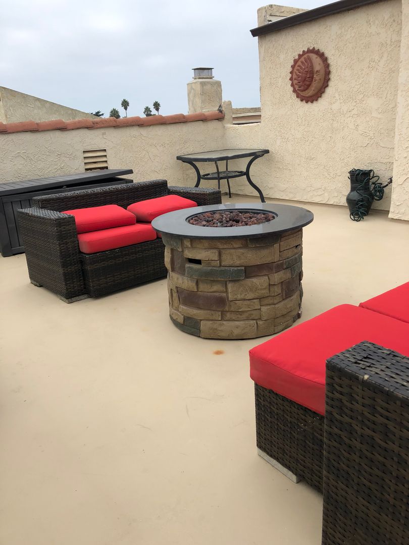 Enjoy the ocean breeze, sunrise or sunset on your rooftop with a full patio set that includes a propane firepit to keep you warm on the colder nights.