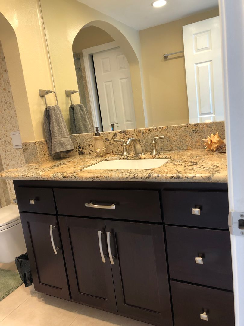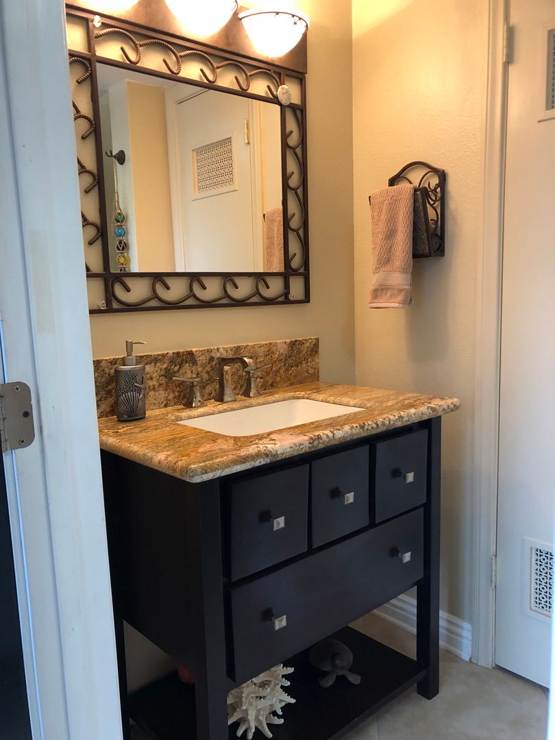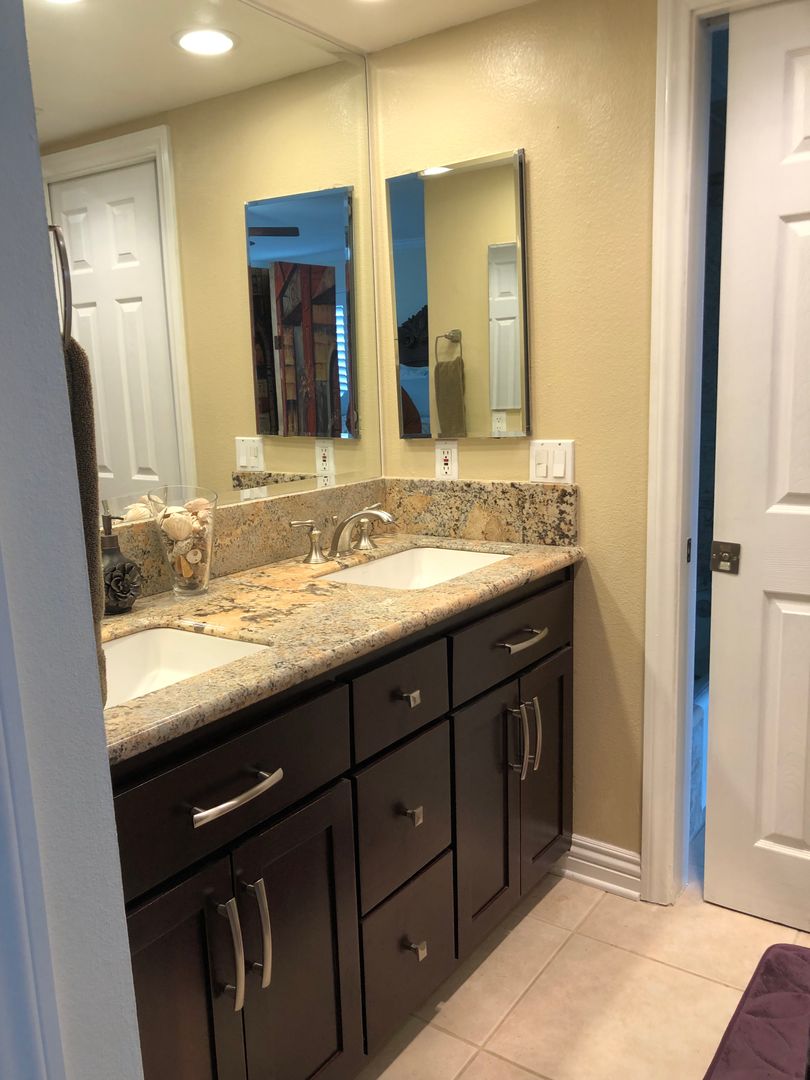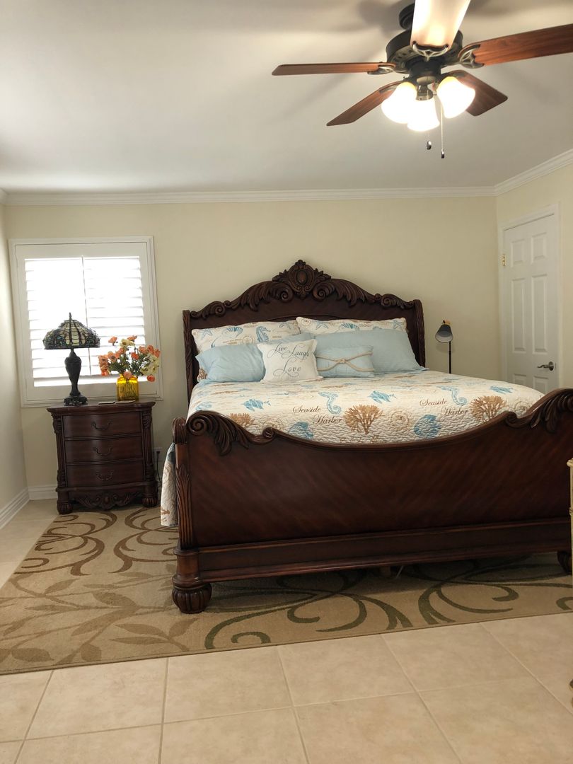 Both bedrooms are located on the second level with ceiling fans to keep you comfortable and private balconies overlooking Nautilus Street. The spare bedroom has a queen size bed, spacious closet space and cozy living area, complete with a loveseat! The master bedroom offers a king size bed, a walk-in closet, direct access to your private balcony and a private shower. The full bathroom, which includes a shower over tub is located next to the master bedroom.