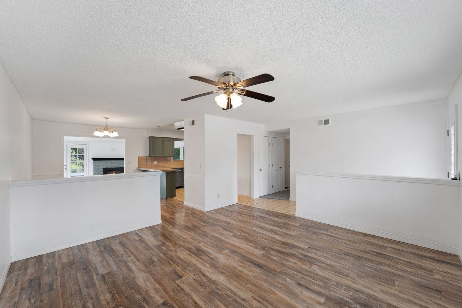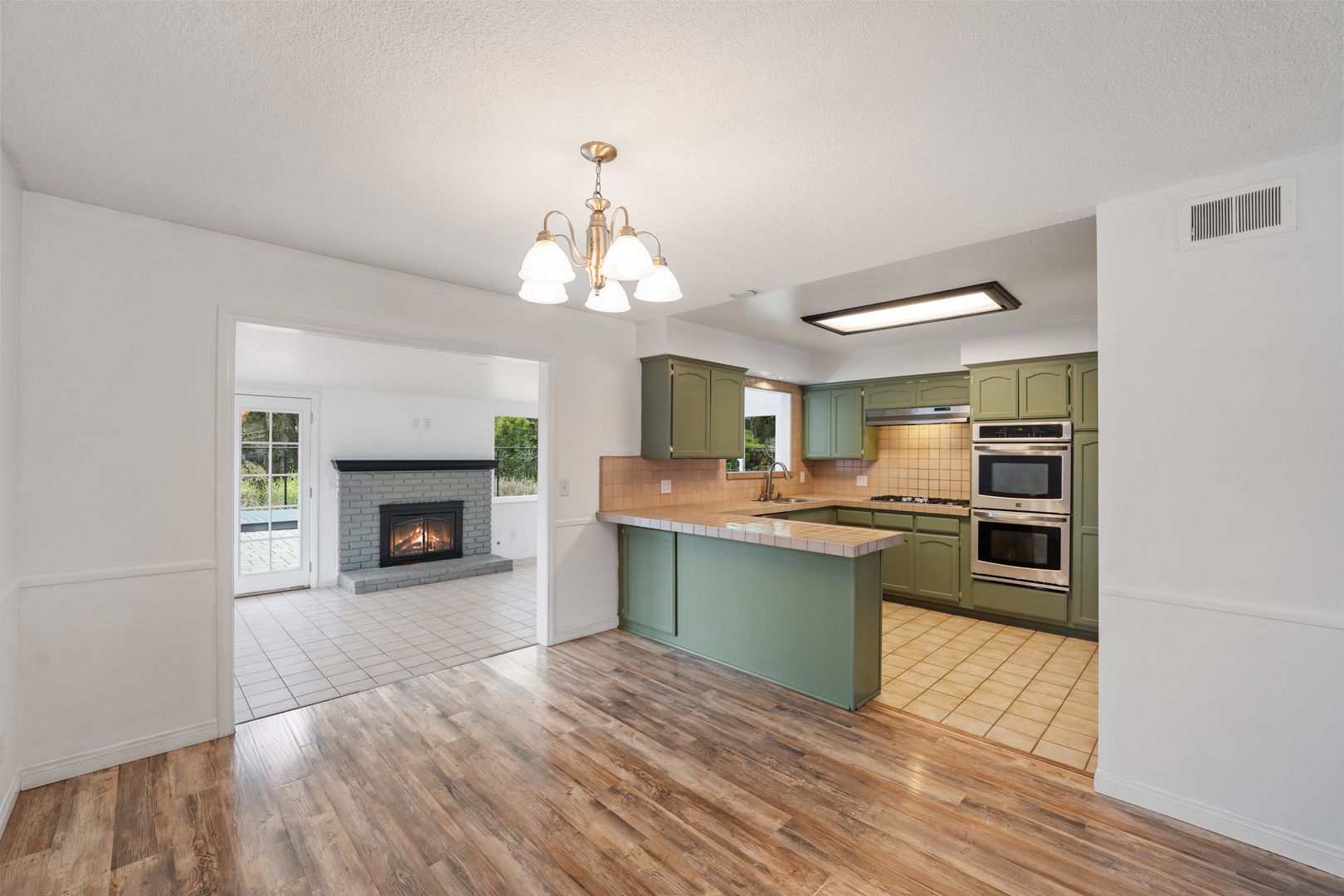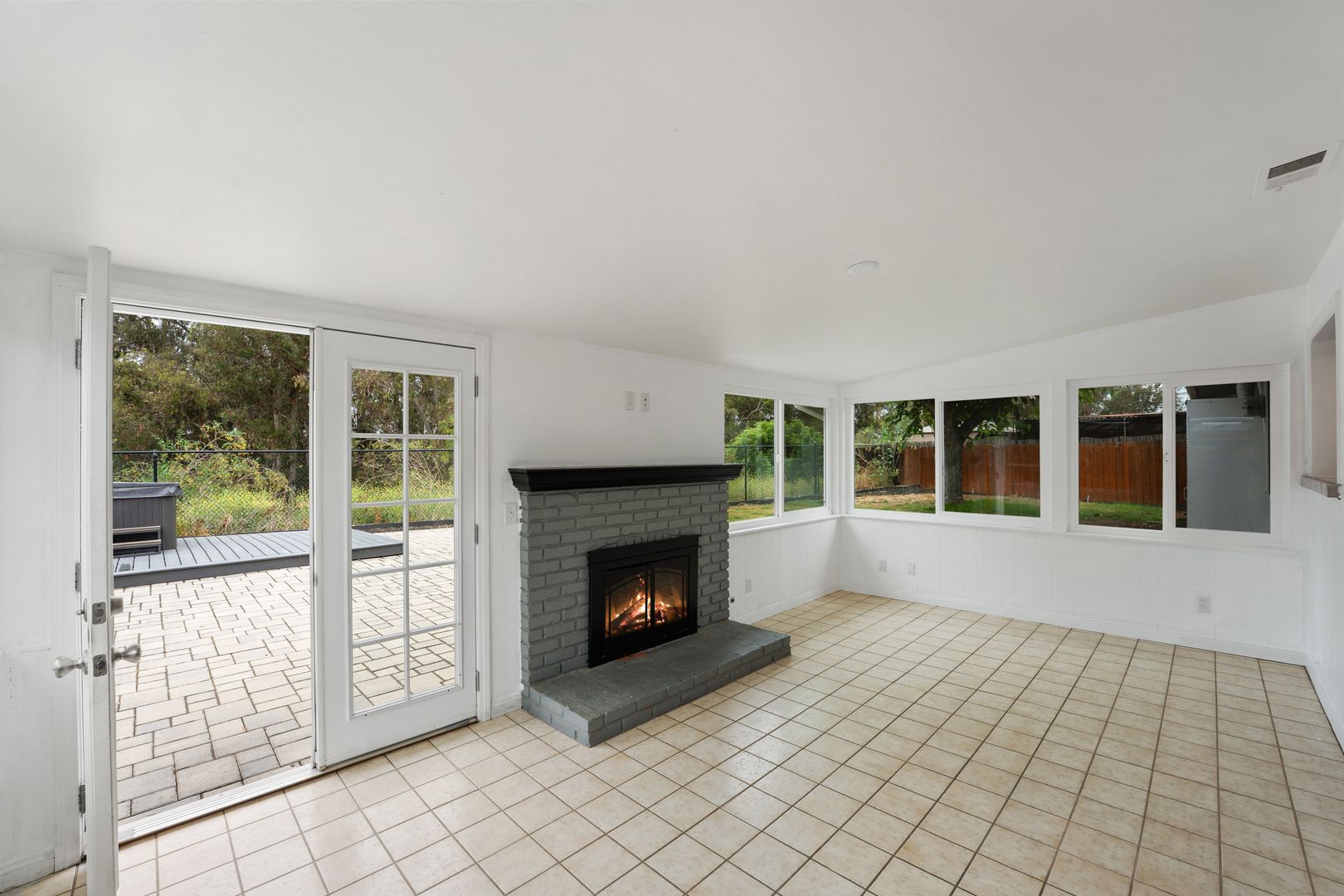 The kitchen offers stainless steel appliances, classic wood cabinetry, a small breakfast bar and opens to the dining area. You’ll enjoy an additional bonus room with a wood-burning fireplace that offers space for relaxing, reading and cozy nights.