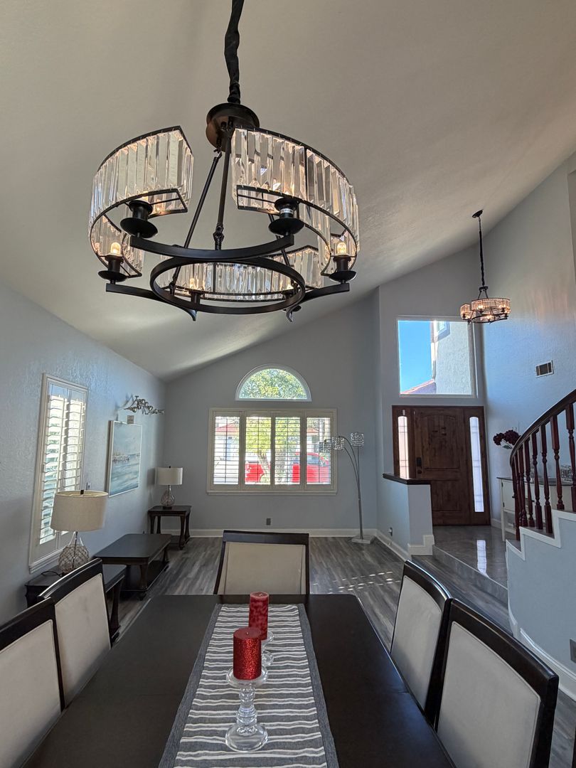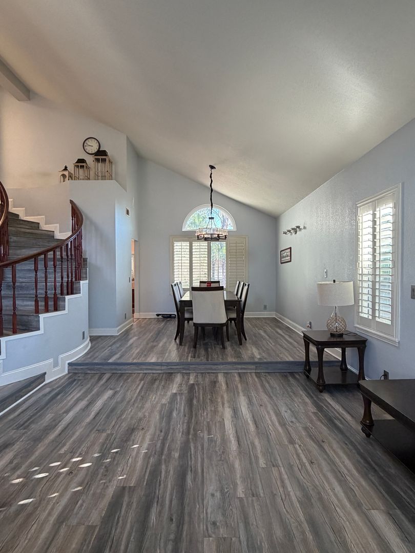 Step inside to a welcoming entry featuring a formal living room and dining area, perfect for entertaining. Just beyond is the newly updated kitchen, thoughtfully designed with quartz countertops, stainless steel appliances. The kitchen opens seamlessly to a spacious family room with gas fireplace, creating the perfect open-concept living space for gatherings and everyday comfort. From the kitchen, enjoy easy access to the landscaped backyard ideal for outdoor entertaining and relaxing.
