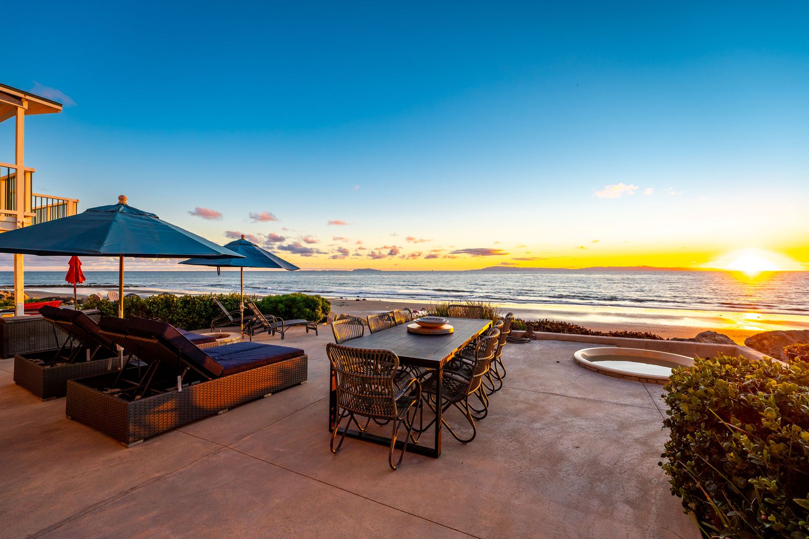 This ocean-front Fully Furnished home provides breathtaking ocean and island views, spectacular sunsets, uncrowded beaches, surfing, kayaking, fishing, beachcombing and all the special enjoyments that come with ocean-front living. The custom California beach house features over 4,300 sq ft of living space with a wonderful open downstairs floorplan that is ideal for entertaining and embracing indoor / outdoor living.