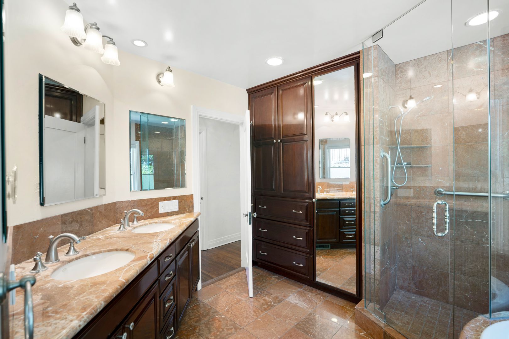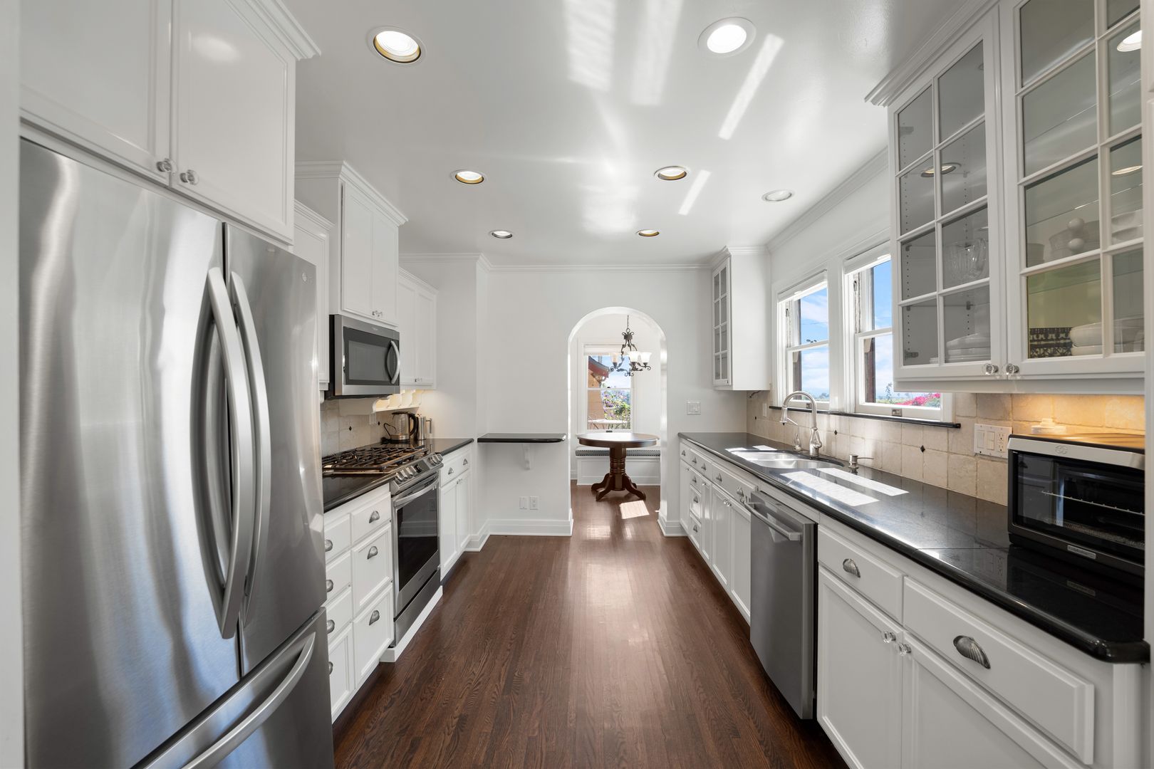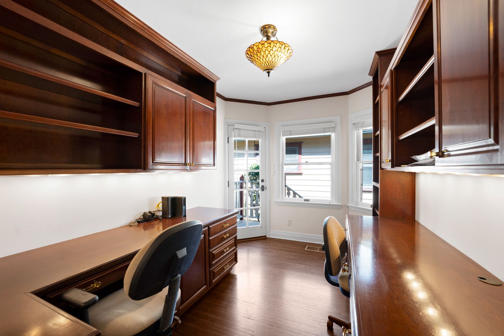 The home was renovated in the early 2000’s while maintaining its historic charm and beauty. The updated gourmet kitchen includes all stainless-steel appliances, granite countertops and plenty of custom cabinets and storage. Also located on the main living level of the home you’ll find the spacious primary bedroom with walk-in closet and en-suite bathroom with marble countertops, double sinks, a walk-in shower and large/separate soaking tub. Just down the hall you will find the dedicated home office with custom built-in desks. Other main level living areas of the home include the open living/entertaining room, formal dining room and breakfast nook.